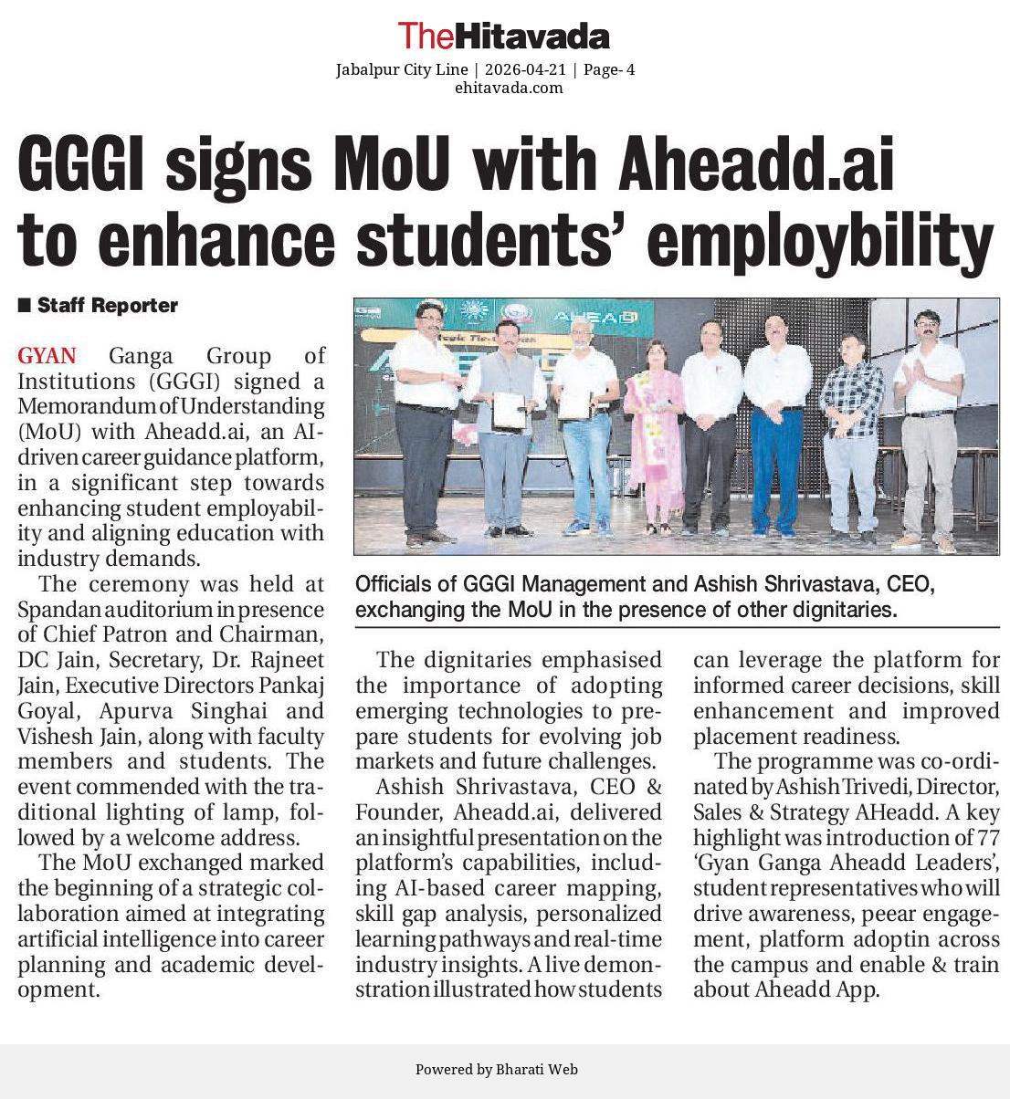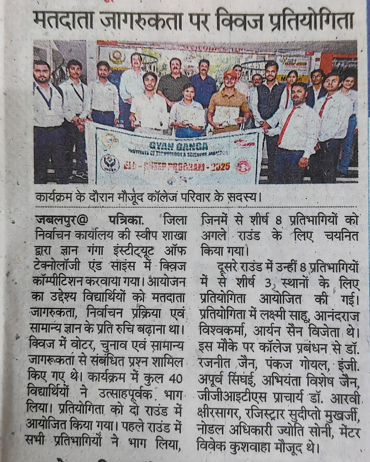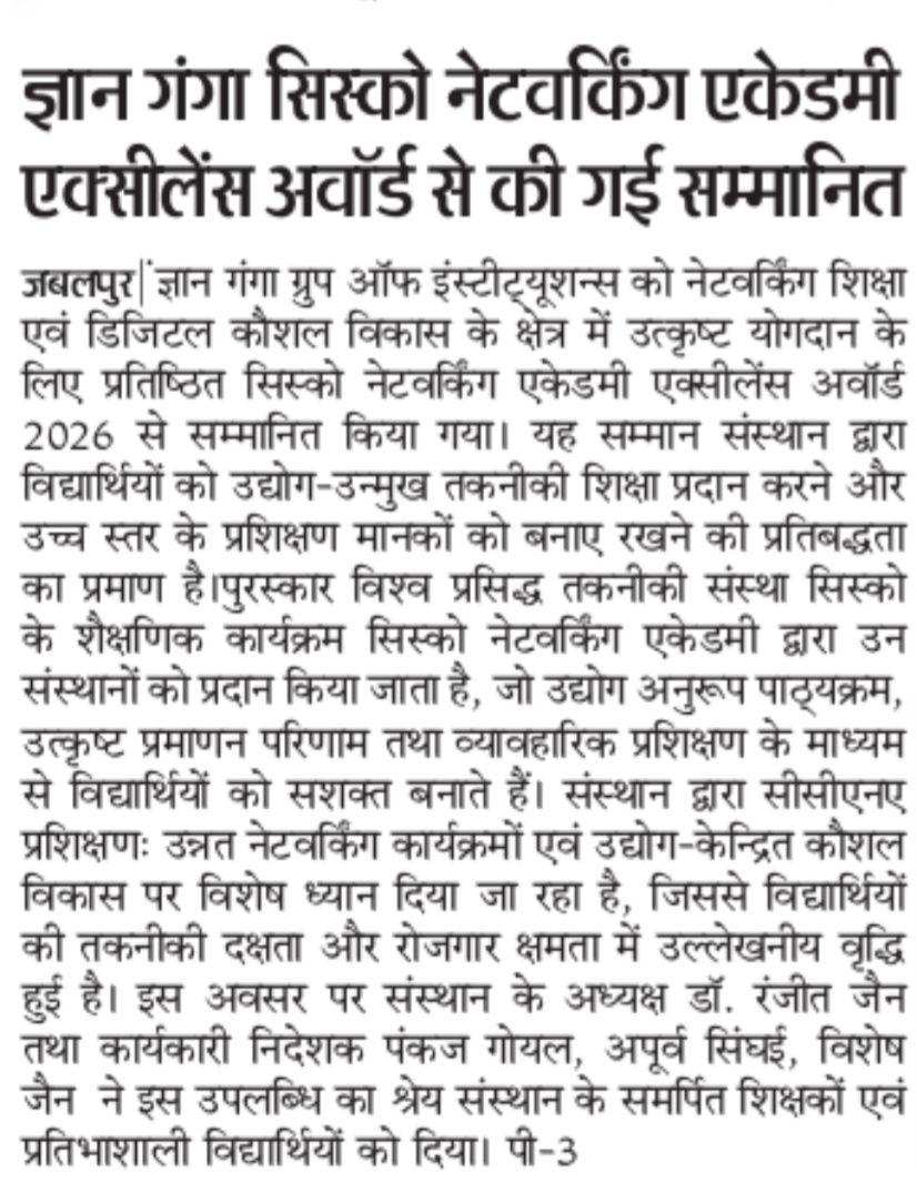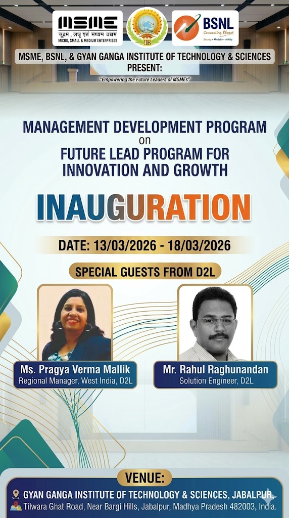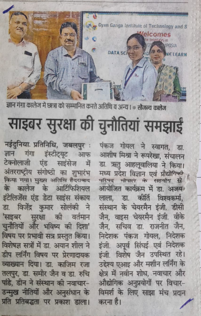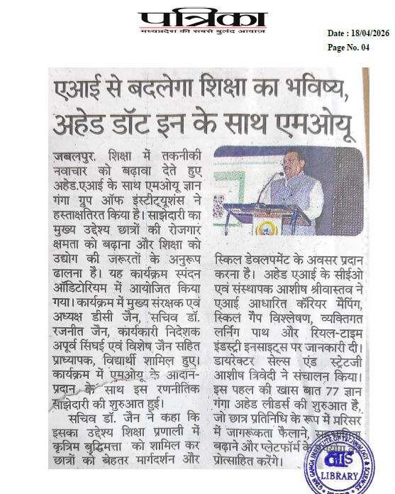 As an academic partner, Gyan Ganga Institute of Technology and Sciences actively encourages its faculty and students to contribute quality research, collaborate with international experts, and engage in knowledge exchange at a global level.