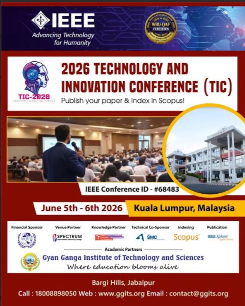 Gyan Ganga Institute of Technology and Sciences, Jabalpur, is proud to be an Academic Partner for the prestigious 2026 Technology and Innovation Conference (TIC-2026), organized under the aegis of IEEE.